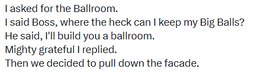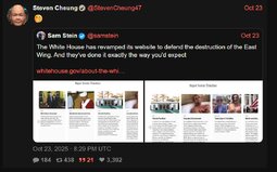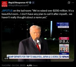 >>23767548 @POTUS on the ballroom: "We've raised over $350 million. It's a beautiful room… I don't have any plan to call it after myself… we haven't really thought about a name yet."