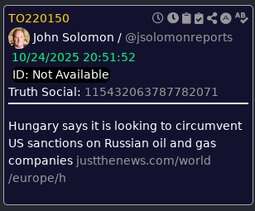 >>23767583 Hungary says it is looking to circumvent US sanctions on Russian oil and gas companies