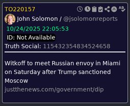 >>23767576 Witkoff to meet Russian envoy in Miami on Saturday after Trump sanctioned Moscow