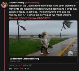 >>23780546, >>23780701, >>23781021, >>23781088 Hurricane Melissa