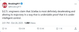 >>23780890, >>23780891 3I/ATLAS Alarms Experts — Clash Over Earth's Fate