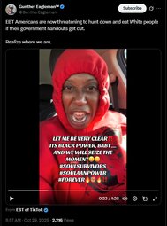 EBT Americans are now threatening to hunt down and eat White people if their government handouts get cut.