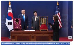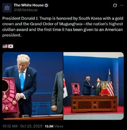 >>23784672, >>23784666, >>23784669, >>23784673, >>23784675 President Trump Participates in a High Honor Presentation [1:20 PM Local] Gyeongju Arts Center, South Korea