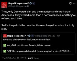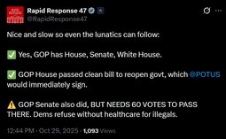 House Republicans already passed a clean, 24-page continuing resolution to keep the government open, pay our troops, protect our border, and maintain essential services. Senate Democrats have blocked it 11 times.