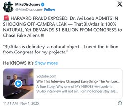 > 'Grifter' Avi Loeb Claims 3I/ATLAS Is 'Natural' Then Allegedly 'Demands $1B From Congress'