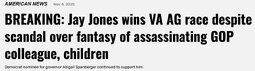 >>23812896 Jay Jones, Radical Democrat Who Fantasized About Murdering Republicans, Wins Virginia Attorney General Election