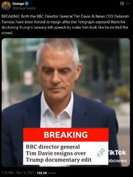 >>23832893, >>23832899, >>23833249, >>23833185 BBC director general Tim Davie and CEO of News Deborah Turness have resigned