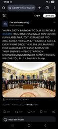 >>23837208 @realDonaldTrump HAPPY 250TH BIRTHDAY TO OUR INCREDIBLE UNITED STATES MARINE CORPS! FROM ITS FOUNDING AT TUN TAVERN IN PHILADELPHIA, TO THE SANDS OF IWO JIMA…