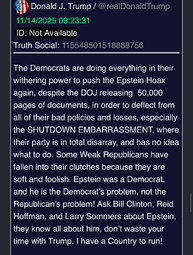 >>23859043, >>23859068, >>23859073, >>23859054, >>23859097 The Epstein Affair is not going away. It is about the abuse of children by an “elite” social class of people who have always believed they are untouchable./ Bitcoin/HRC