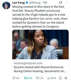 >>23857792, >>23857904, >>23857910, >>23857878, >>23858483 Epstein texting Stacy Plaskett during 2019 hearing when Michael Cohen testified