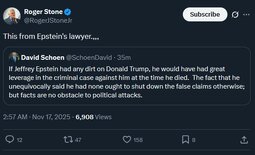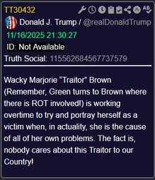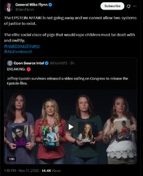 >>23863506 @realDonaldTrump As I said on Friday night aboard Air Force One to the Fake News Media, House Republicans should vote to release the Epstein files, because we have nothing to hide, and it’s time to move on from this Democrat Hoax perpetrated by Radical Left Lunatics in order to deflect from the Great Success of the Republican Party, including our recent Victory on the Democrat “Shutdown.”