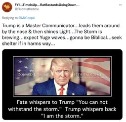You want them to give away the obvious? That the SwampDeepStateGlobohomoConglomerationCaliphate is cooked, derailed, end zoned, stopped, defeated, totalled, etc.? That: "We Have It All"? That: "Nothing Can Stop What Is Coming"?