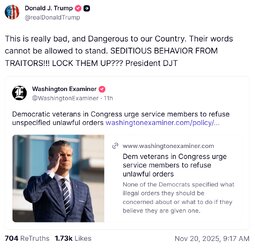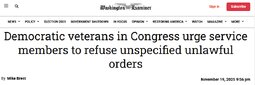 >>23877716, >>23877738 Democratic lawmakers released a video urging service members to defy 'illegal' orders. It’s a message Republicans are not taking lightly