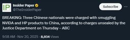 >>23879119 Three Chinese nationals were charged with smuggling NVIDA and HP products to China
