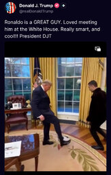 >>23878056 @realDonaldTrump Ronaldo is a GREAT GUY. Loved meeting him at the White House. Really smart, and cool!!! President DJT