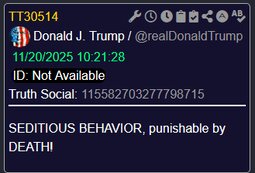 >>23876708 @realDonaldTrump 11/19/2025 20:29:40 Communist Mayor of New York City, Zohran “Kwame” Mamdani, has asked for a meeting. We have agreed that this meeting will take place at the Oval Office on Friday, November 21st