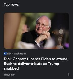 Notably, President Donald Trump and Vice President JD Vance were reportedly not invited to Cheney's funeral — a detail that Axios first reported on Nov. 19. Their absence as the sitting leaders of the country is a more staunch departure from tradition, but not entirely surprising given that Cheney broke party ranks to endorse the Democratic presidential ticket in 2024.