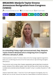 >>23885917, >>23885937, >>23885942, >>23885959, >>23885968, >>23886120, >>23886289, >>23886428 Another self serving Congressional member bites the dust, MTG my last day being January 5th, 2026."