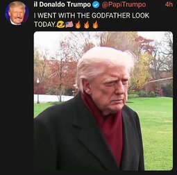 >>23889646, >>23889664, >>23889673, >>23889676 Q mentions Godfather III a lot - This morning Trump goes with the "Godfather look".