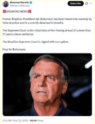 >>23889048 Brazilian Police Make 'Preventative Arrest' Of Jair Bolsonaro, Fearing He'll Flee