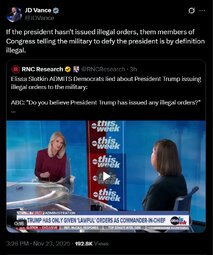 >>23893098 @SenatorSlotkin tries to defend her sick plot to turn service members against the Commander-in-Chief — who has NEVER issued a single "illegal order."