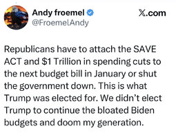 >>23894291 @realDonaldTrump Republicans have to attach the SAVE ACT and $! Trillion in spending cuts to next budget bill or shut the government down.