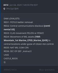 Qresear.ch/q-posts, Qanon.pub, Qalerts.pub, OperationQ.pub, Qposts.online, 8kun.top/qresearch, Qalerts.app, Qalerts.net, douknowq.com/134295/Q-Anon-Pub.htm8ku