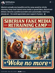 Siberia is actually very beautiful and the camp would be strictly voluntary. Deep state trained some media to spread fakes, discord and division. Become a positive journalist and a peacemaker. And if you already are - the world appreciates your support of peace. 🕊️