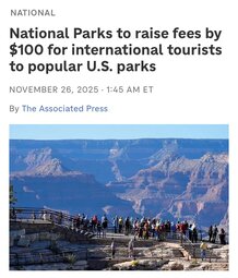 >>23904240 An annual National Parks/Federal Recreational Lands pass will remain $80 for Americans, but increase to $250 for nonresidents.