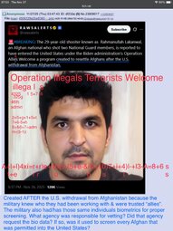 In addition, both groups, along with al-Qaeda, saw value in impersonating these units. A couple thousand fake documents and ID cards were produced so terrorists could claim affiliation with KPF/01/02 and other special units. This allowed some individuals to fraudulently move through the U.S. evacuation process by exploiting unsuspecting volunteers and taking advantage of weak vetting procedures. We have confirmed that Lakanwal’s ID (pictured right) and employment were legitimate, but a full review is recommended, as terrorists have explicitly claimed using this route as a pipeline into the U.S.