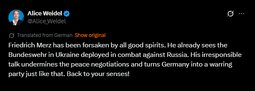 “The decades of Pax Americana for Europe and Germany are largely over for us. It no longer exists as we knew it. Nostalgia will not help us, and I would be the last person to give in to this nostalgia. This is a reality! The Americans are now very fiercely defending their interests. And that is why we must now defend our interests.”