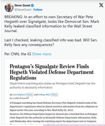 >>23936871, >>23936964, >>23937077 Signalgate, looks like Democrat Sen. Mark Kelly leaked classified information to the Wall Street Journal.
