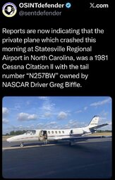 The plane was indeed registered to Greg Biffle.