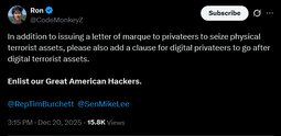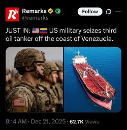 >>24007516 @PeteHegseth The blockade of sanctioned oil tankers departing from, or bound for, Venezuela will remain in full force until Maduro’s criminal enterprise returns every stolen American asset.