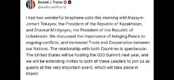 >>24039288, >>24039292 @realDonaldTrump I just had a good and very productive telephone call with President Putin of Russia prior to my meeting, at 1:00 P.M. today, with President Zelenskyy of Ukraine.