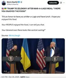 >>24039522, >>24039890 LIVE: President Trump Holds a Bilateral Meeting with Ukrainian President Zelenskyy - 12/28/25