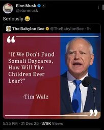 the youtuber prob an ex navy seal working for erik prince … it was explained earlier here that if the DOJ exposed the somali minnesota fraud it would cost votes in midterms leading to disaster for the adminstration as far as getting legislation through, politics game of balance for sure