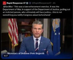 >>24069404 @RapidResponse47 @SecWar: "This was a law enforcement exercise. It was the Department of War, in support of the Department of Justice, pulling out an indicted person, who ultimately will face justice… this is not something you notify Congress about beforehand."