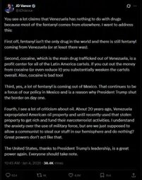 >>24070781, >>24070840 Venezuela became a narco-state under the direction of George H.W. Bush, who installed a leader there many years ago and then sent his son, Jeb Bush to set up the drug trafficking routes and money laundering system.