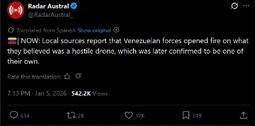 >>24078666, >>24078669 SecWar: "Maduro got to meet some great Americans wearing night-vision goggles 3 nights ago… In fact, his wife said, 'I think I hear aircraft outside.'"