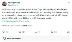 >>24080884 Records show US Capitol Police Capt. Michael Byrd, who fatally shot unarmed J6 protester Ashli Babbitt w/o warning, has been running an unaccredited day-care center w/ wife Kaleska from their MD. home