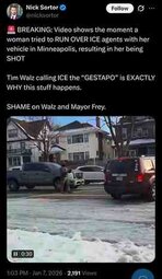 🚨 BREAKING: Video shows the moment a woman tried to RUN OVER ICE agents with her vehicle in Minneapolis, resulting in her being SHOT