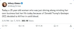>>24087621 @realDonaldTrump I have just viewed the clip of the event which took place in Minneapolis, Minnesota. It is a horrible thing to watch. The woman driving the car was very disorderly, obstructing and resisting, who then violently, willfully, and viciously ran over the ICE Officer, who seems to have shot her in self defense.