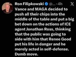Could it possibly be that the WH is releasing the shooter agents video and the honking horn video with a bunch of gaslighting because they have to defend ICe at all costs, but really they are releasing them to be transparent and want the public to have access to them quickly and get feedback. I think the vids are not good for the agent.