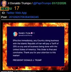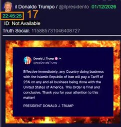 >>24112338 @realDonaldTrump Effective immediately, any Country doing business with the Islamic Republic of Iran will pay a Tariff of 25% on any and all business being done with the United States of America. This Order is final and conclusive.
