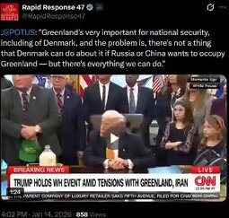 >>24121990, >>24122091 POTUS: The problem is there's not a thing that Denmark can do about it if Russia or China wants to occupy Greenland, but there's everything we can do, we found that out last week with Venezuela.
