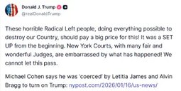 https://nypost.com/2026/01/16/us-news/michael-cohen-claims-he-was-coerced-by-letitia-james-to-turn-on-trump/