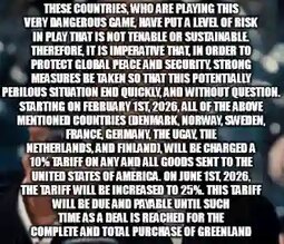 >>24135528 NATO members to face tariffs increasing to 25% until a Greenland purchase deal is struck