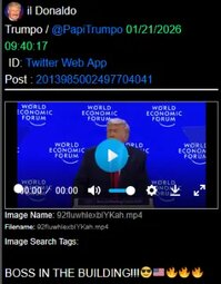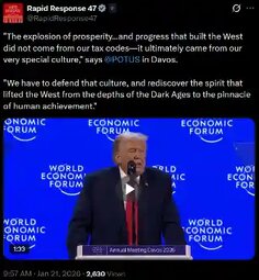 >>24151223, >>24151507, >>24151571 @realDonaldTrump America will be well represented in Davos — by me. GOD BLESS YOU ALL! PRESIDENT DONALD J. TRUMP