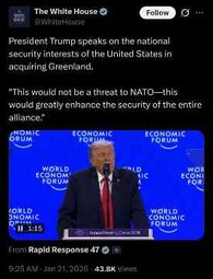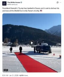 >>24151455 "@POTUS boards Air Force One for Davos, Switzerland — where he'll meet with world leaders and deliver remarks at the World Economic Forum"